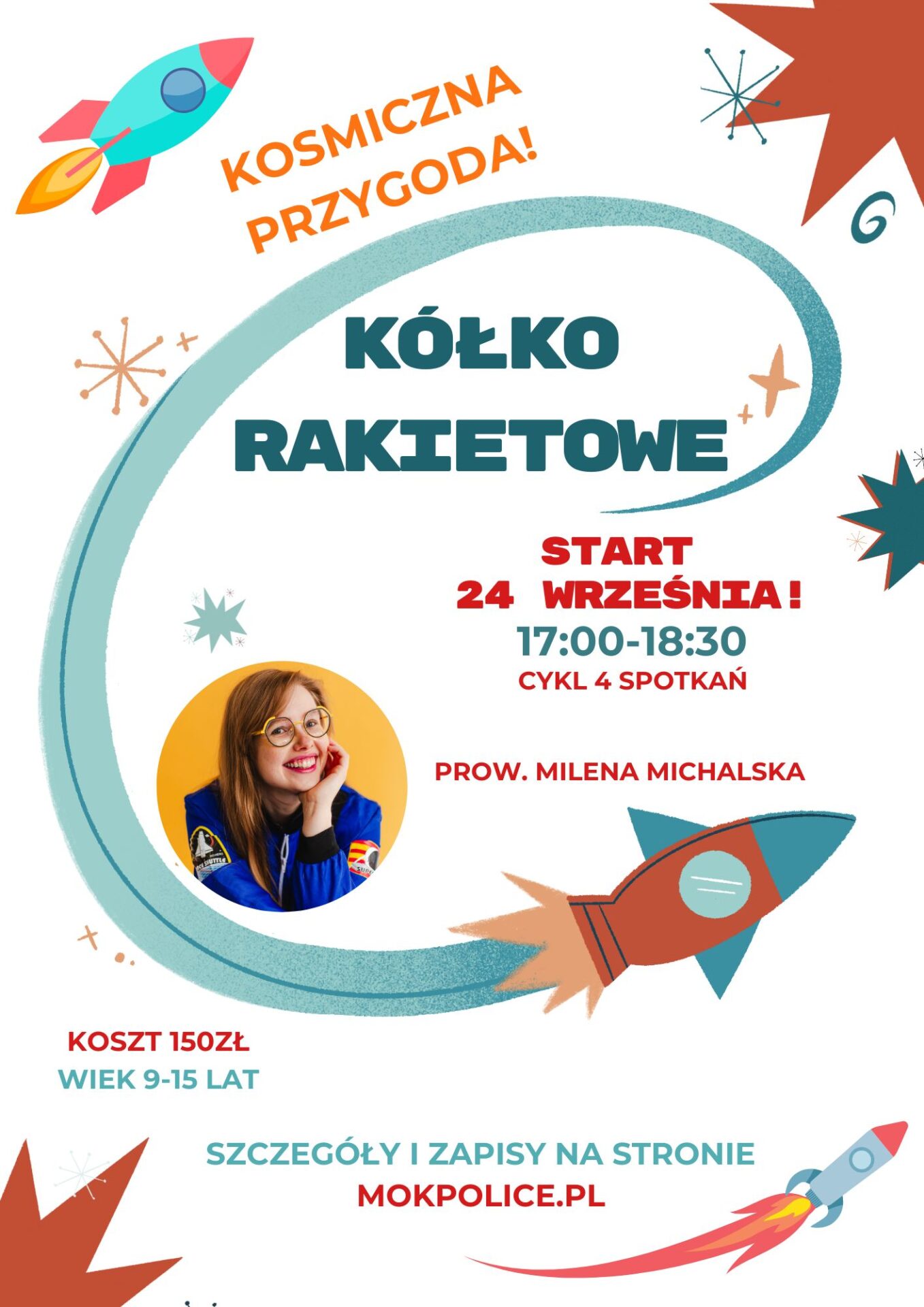 READ MOREAdres: Siedlecka 1 A Strona: https://www.mokpolice.pl/zapowiedzi/837-kolko-rakietowe.html Facebook: E-mail: mok@mokpolice.pl Telefon: 913121055 Zapraszamy na Kółko Rakietowe! Czy marzysz o podbiciu kosmosu? Chcesz nauczyć się, jak zbudować własną rakietę