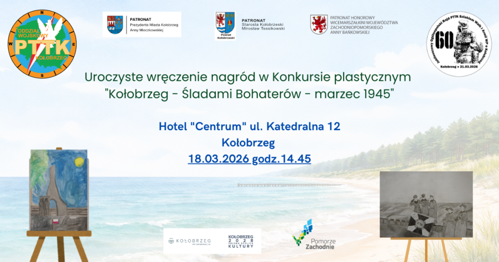 60. JUBILEUSZOWY OGÓLNOPOLSKI RAJD PTTK SZLAKIEM WALK 1 ARMII WP O KOŁOBRZEG w 81. rocznicę walk o Kołobrzeg i Zaślubin Polski z morzem Konkurs plastyczny Kołobrzeg – Śladami Bohaterów marzec 1945