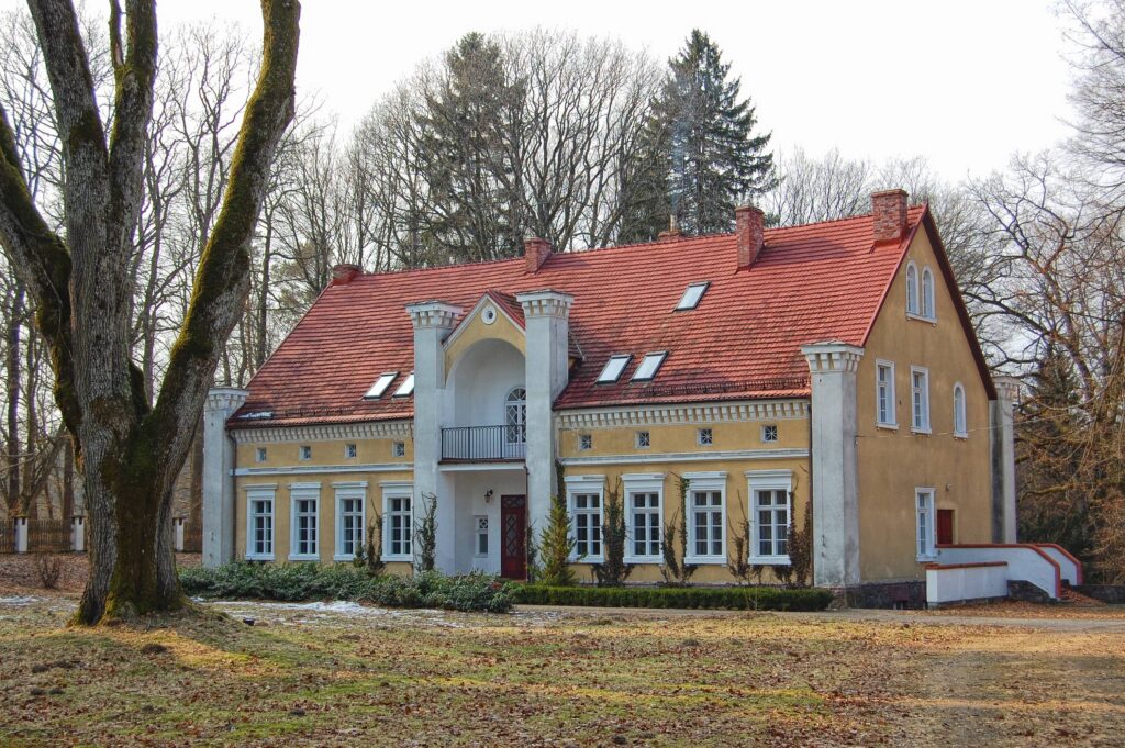 Neogotycki dwór myśliwski został wzniesiony dla właścicieli okolicznych dóbr w drugiej połowie XIX wieku. Jednokondygnacyjna budowla została wzniesiona na planie prostokąta, nakryto ją dwuspadowym dachem. Poddasze zostało zaadaptowane do celów użytkowych współcześnie poprzez wmontowanie w dach świetlików. Dwór otacza park leśny, w którym zachowały się pozostałości cmentarza kopanińskich leśników.