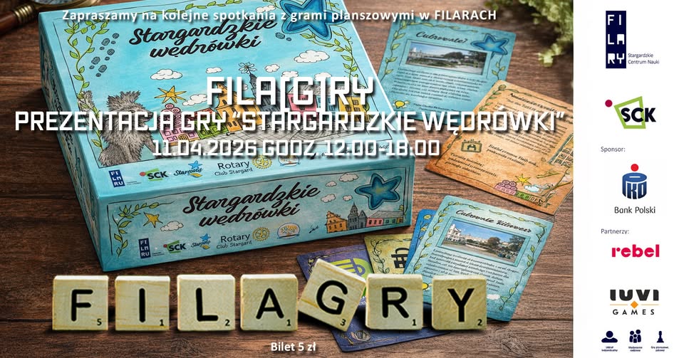 „Stargardzkie Wędrówki” to autorska gra planszowa stworzona przez uczniów Szkoły Podstawowej nr 6 we współpracy z edukatorami SCN FILARY podczas warsztatów, które sfinansował Rotary Club Stargard . To efekt wielu miesięcy pracy, pomysłów i zaangażowania młodych mieszkańców, którzy postanowili opowiedzieć o swoim mieście poprzez historię, ciekawostki i lokalne inspiracje.