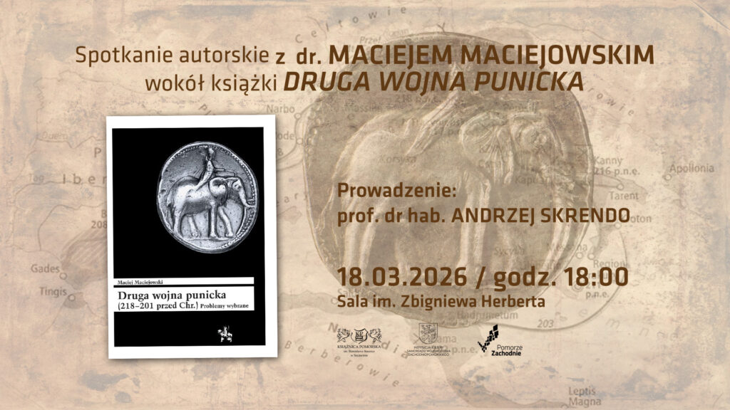 Zapraszamy wszystkich zainteresowanych historią starożytną, wojskowością i taktyką wojenną na spotkanie autorskie poświęcone najnowszej książce dr. Macieja Maciejowskiego „Druga wojna punicka (218–201 przed Chr.). Problemy wybrane” (seria: # 198 Bitwy / Taktyka), które poprowadzi prof. dr hab. Andrzej Skrendo.
