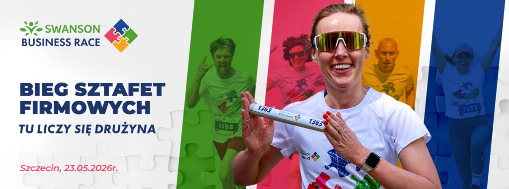 Swanson Business Race to największy w regionie bieg sztafet firmowych, integrujący pracowników i właścicieli firm w sportowej atmosferze. Wydarzenie odbędzie się 23 maja 2026 r. w Szczecinie, na Jasnych Błoniach, a każda 4-osobowa drużyna ma do pokonania cztery odcinki po ok. 4 km.