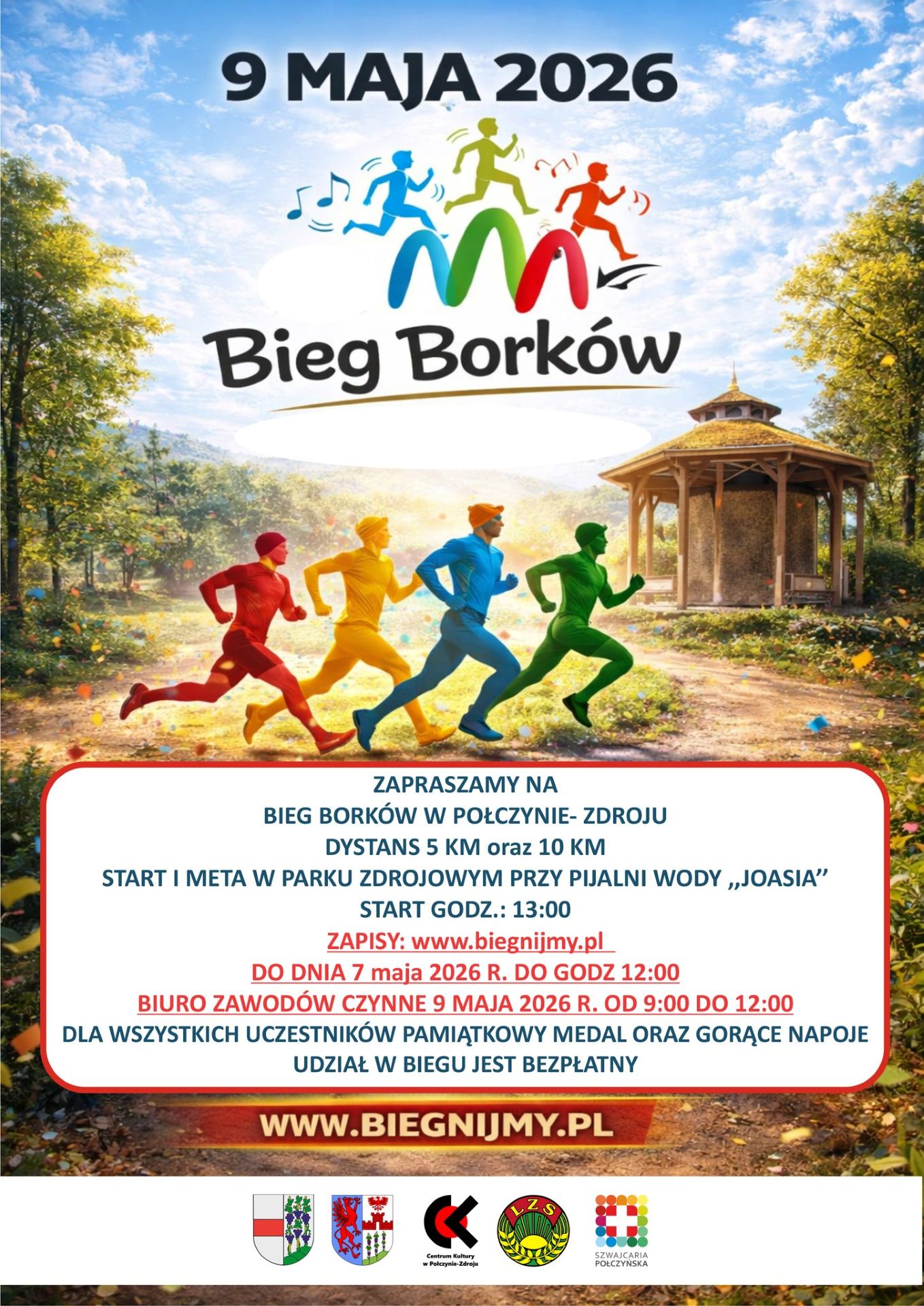 Zapisy na bieg odbywają się na stronie internetowej: https://biegnijmy.pl/bieg-borkow-polczyn-zdroj-2026 do dnia 7 maja 2026 do godziny 12:00.