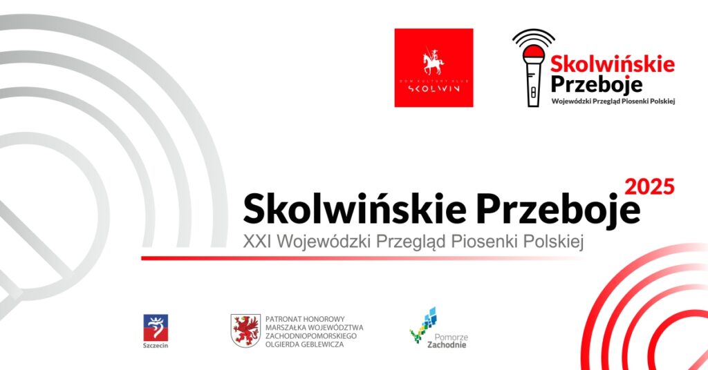 w imieniu Dyrektora Domu Kultury „Klub Skolwin” w Szczecinie i w imieniu patronującego wydarzeniu Marszałka Województwa Zachodniopomorskiego – Pana Olgierda Geblewicza mamy przyjemność po raz dwudziesty pierwszy zaprosić Was do udziału w Wojewódzkim Przeglądzie Piosenki Polskiej „Skolwińskie Przeboje”.