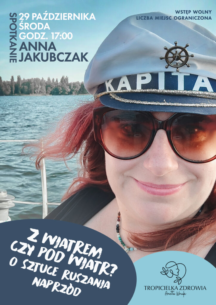 Miejska i Powiatowa Biblioteka Publiczna w Goleniowie wraz z Tropicielką Zdrowia serdecznie zapraszają 29 października (środa) o godz. 17:00 na spotkanie z Anną Jakubczak pod tytułem „Z wiatrem czy pod wiatr? O sztuce ruszania naprzód”.