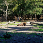 Zagroda Pokazowa Żubrów zajmuje 28 ha. Za ogrodzeniem ustawione są tarasy widokowe, a wejścia strzeże ozdobna brama. Do Zagrody przywieziono w 1976 r. cztery żubry z Borek i Białowieży: krowę “Pominę”, byka “Podskakiewicza” oraz dwie jałówki “Pompeję” i “Podwyżkę”. Obecnie większość żubrów żyjąca na terenie zagrody tu właśnie się urodziła. Co roku rodzą się 1-2 cielaki. W różnych okresach liczba żubrów wahała się od 5 do 12. Obecnie jest ich 5, są to: Poznaniak II, Polikosia, Posawa, Pozowa oraz Polanin II.